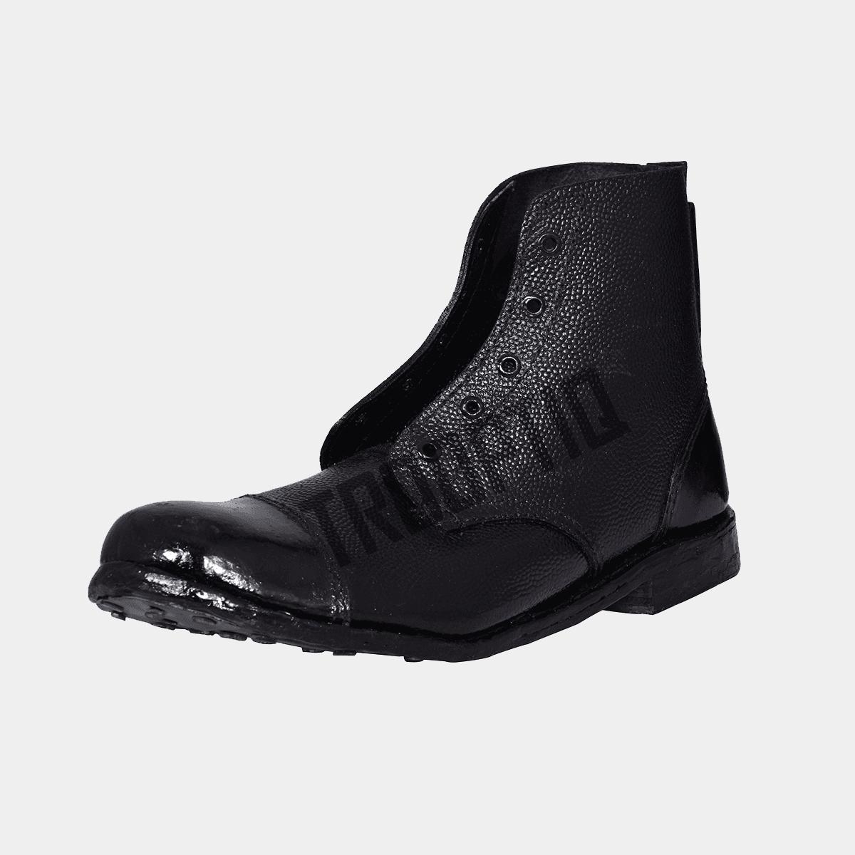 Ammo boot also known as keel boot were the standard footwear for the British Army. They are unlined ankle-boots with iron heel-plate and toe-plate and an iron-studded leather sole. They were designed to be hard-wearing and long-lasting rather than comfortable. These shoes are used by soldiers during their march past since these shoe soles make a loud crunching sound and with this, they earn them the nickname “crunchies”. Being a noteworthy enterprise of this industry, we manufacture a wide range of Ammunition Boot at the affordable price in all sizes.